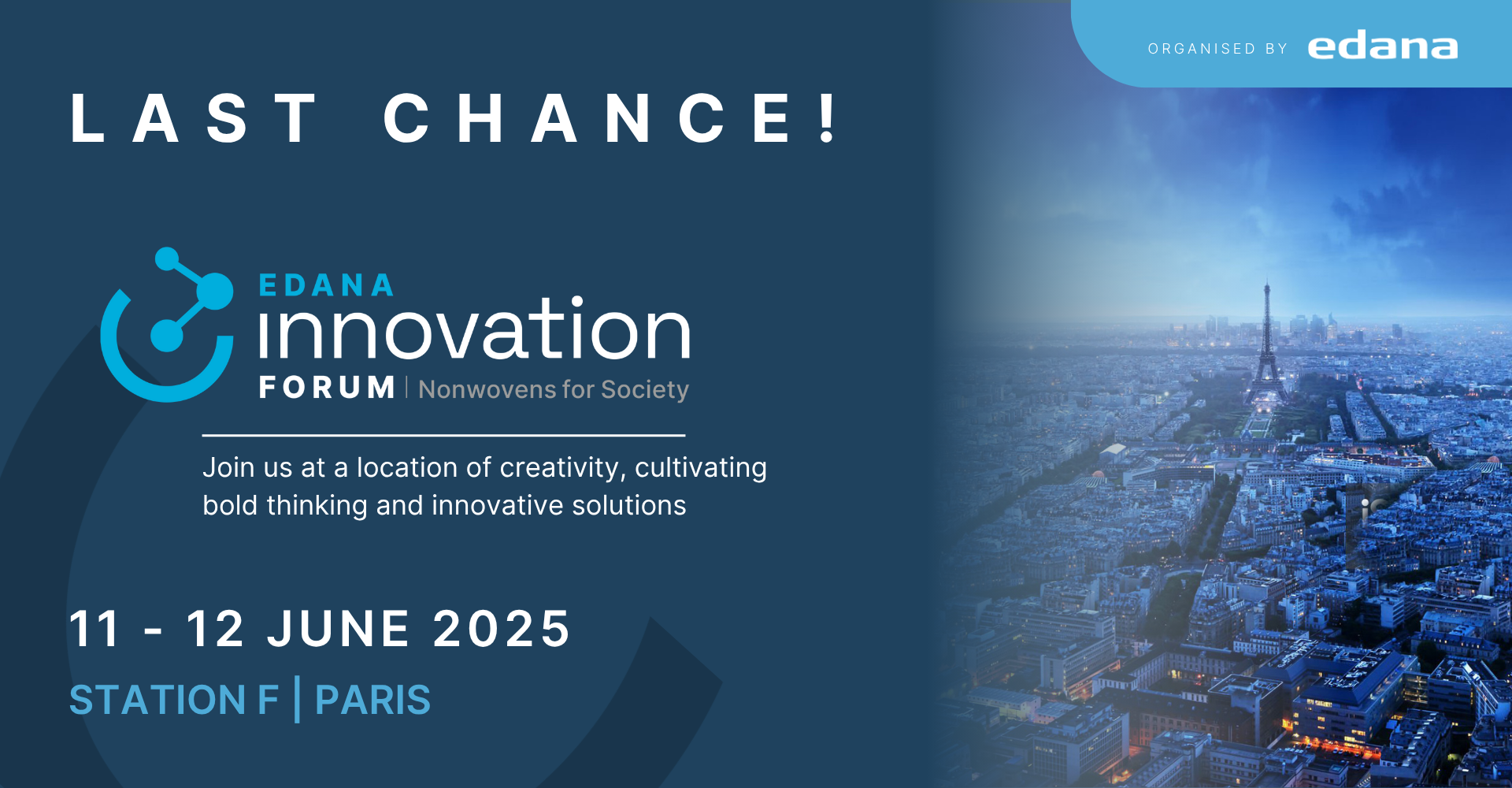 Brussels, 14th of May 2025 – The countdown is on! With just 4 weeks to go, the EDANA Innovation Forum 2025 is nearly at capacity, and this is your final chance to join the most forward-thinking event in the nonwovens calendar!